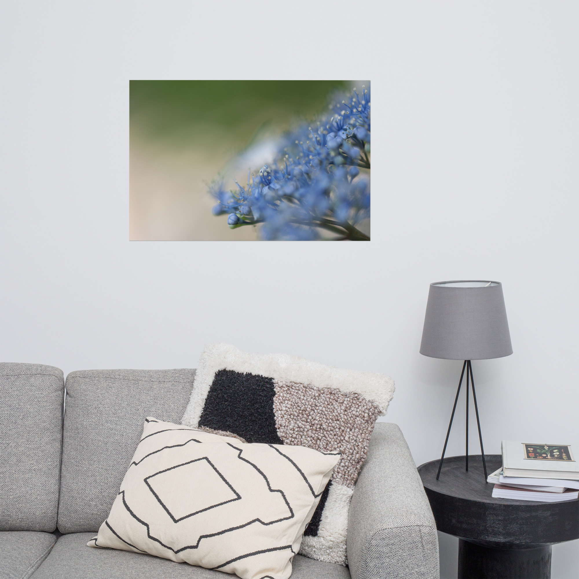 The intricate details of the petals and the dreamy, soft focus capture the essence of the Japanese rainy season—a time of quiet beauty and renewal. This print brings a cooling, meditative atmosphere to any space, perfect for those who appreciate the delicate balance of nature and heritage.