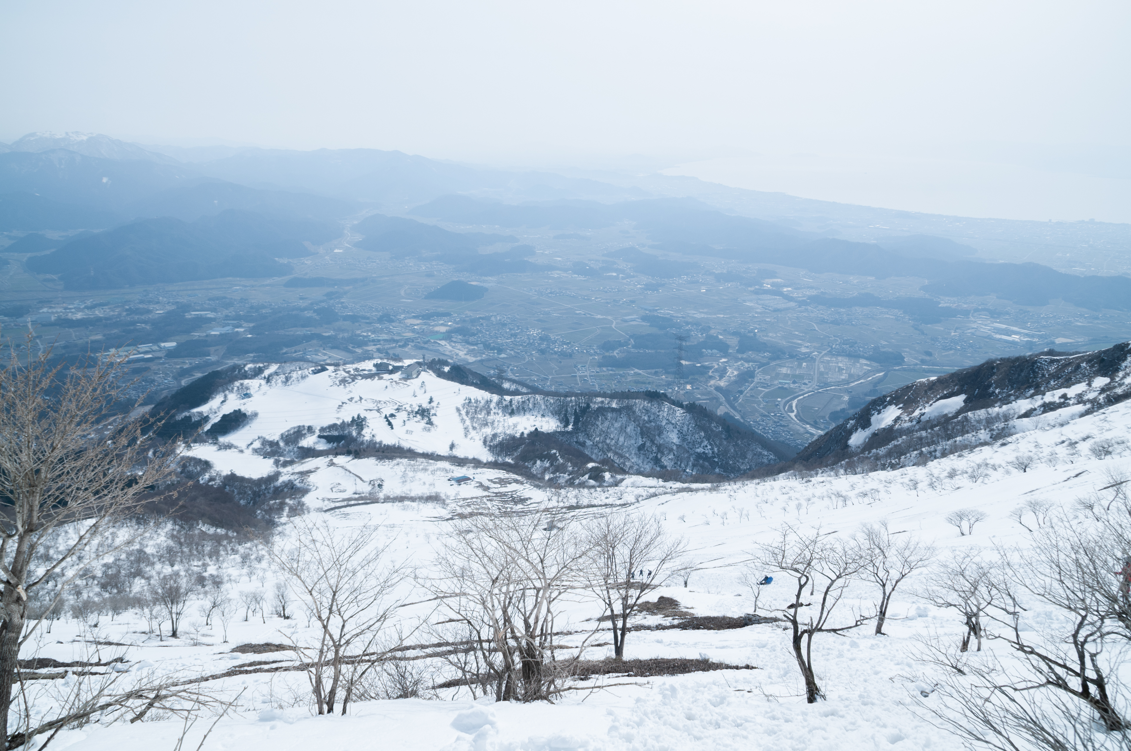 3月の空に高くそびえる伊吹山は、いまだ冬の銀世界を纏っています。険しい稜線にしがみつく残雪が、増しゆく早春の陽光を反射し、「宝石のような透明感」を放っています。